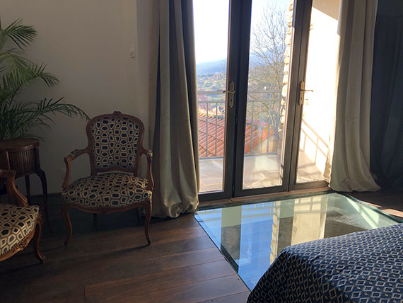 A l'étage, vous trouverez une magnifique chambre avec son balcon terrasse et sa vue imprenable sur la vallée côté ouest et ses couchers de soleil magnifiques, avec un lit 160, son coin salle de douche et un WC séparé.
