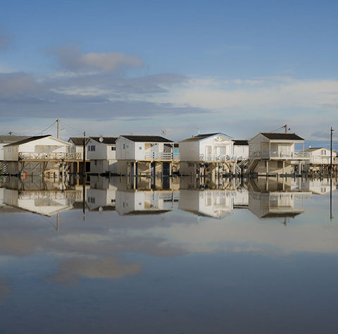 A découvrir la lumière et les couleurs des salins de l'île Saint Martin, le quartier des chalets en bois sur pilotis, immortalisé par le film 37°2 le matin de Jean-Jacques Beineix...